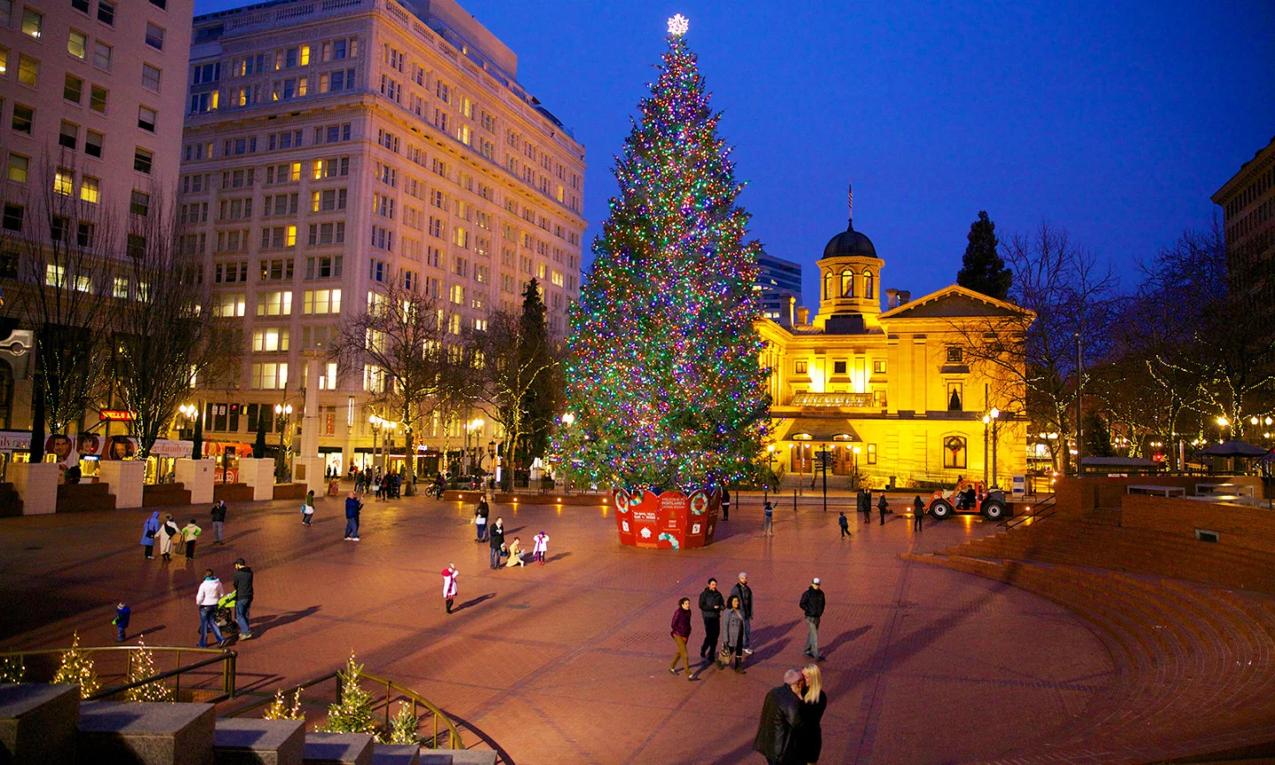 Portland’s 75-foot Douglas fir—wrapped in 9,500 LEDs—lit up on November 28 and shines nightly through the holidays. The kickoff sing-along has passed, but free photos, carolers, and that sweet roasted-chestnut smell keep the magic alive. Pair it with downtown window displays for a quick, festive outing.